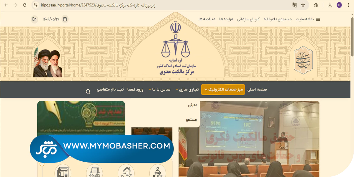 1. ورود به سامانه مرکز مالکیت معنوی به آدرس https://iripo.ssaa.ir.